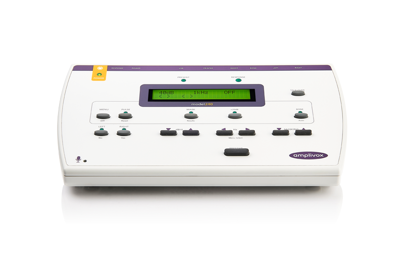 Amplivox 240, es un audiómetro que ofrece vía aérea y vía ósea. Entre las características que incluye: Ruido Banda Angosta, un rango de atenuador hasta 120 dBHL y función talkover integrada en el equipo. Diseño compacto, liviano y fácil de transportar para audiometrías en terreno. Cumple con los requisitos técnicos para audiómetros Tipo 3 (IEC 60645-1), lo que permite que “Amplivox 240” se pueda utilizar para evaluaciones de vigilancia.