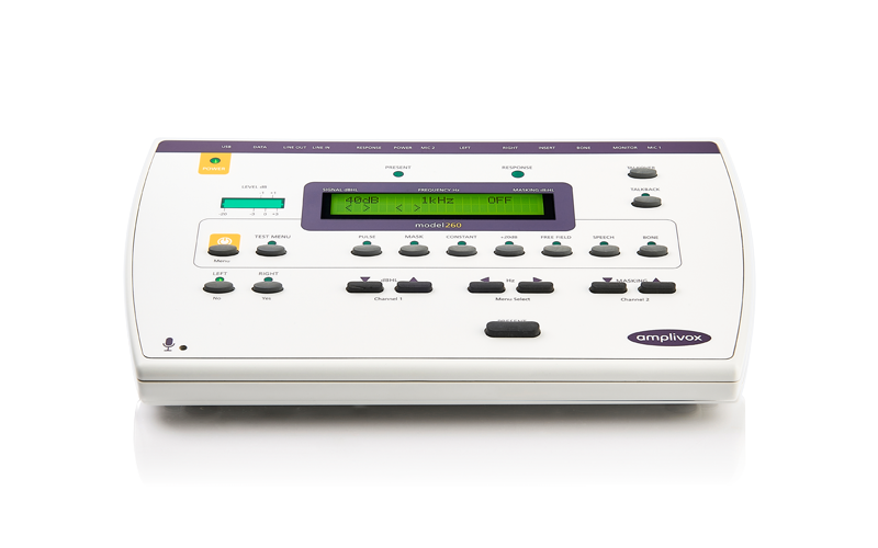 Amplivox 260, es un audiómetro clínico con diseño compacto, liviano y fácil de transportar (incluye bolso). Ideal para utilizar en clínicas, hospitales,centros audiométricos y evaluaciones en terreno. Cumple con los requisitos técnicos para audiómetros Tipo 2 (IEC 60645-1). Las características principales que incluye: vía aérea, vía ósea y logo audiometría.